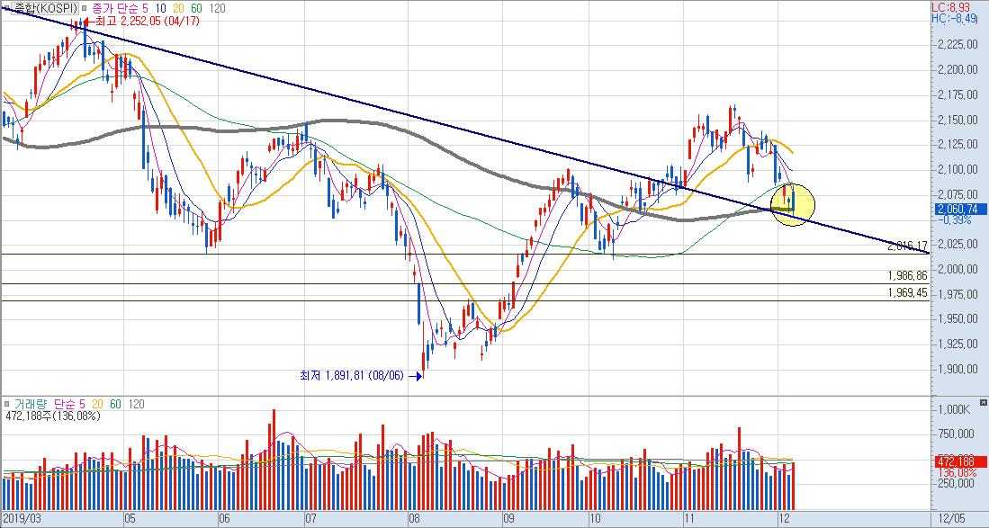 코스피의 경우는 종가상 120일 선에서 반등이 나와주며, 2,000 포인트를 방어하였습니다.
