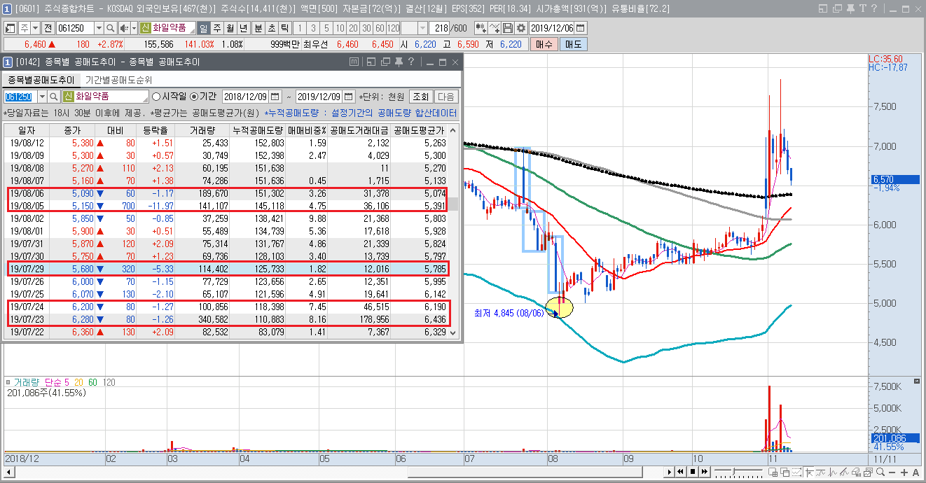 화일약품도 마찬가지로, 위 두종목에 비해서는 공매 거래량이 부족한 듯 보이지만,