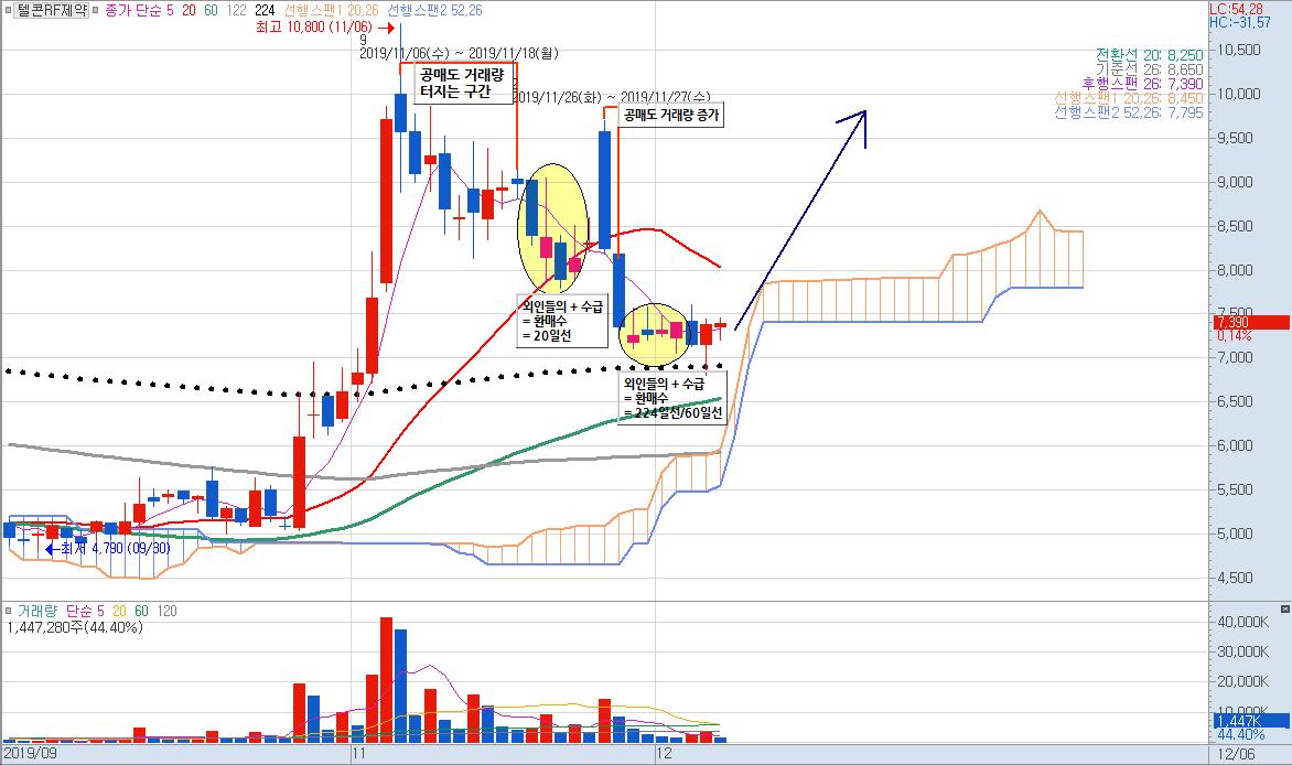 위에서 언급드렸던 20일선을 종가상 돌파하는 흐름은 금일 12월 13일 차트를 보시면 언급한 대로 되었네요~