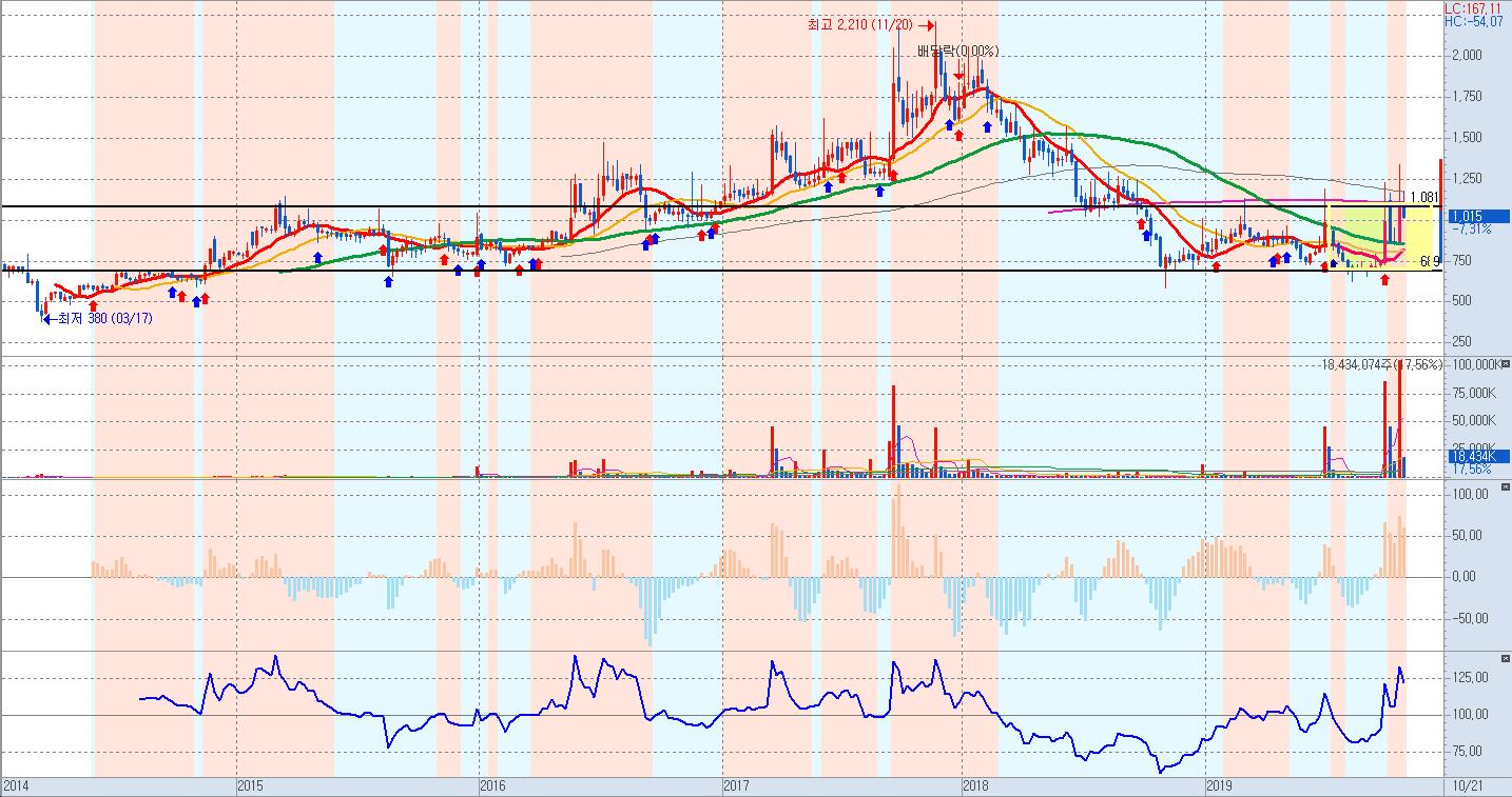 5년 최고 거래량이 터지면서 박스 상단을 두들기고 있습니다.