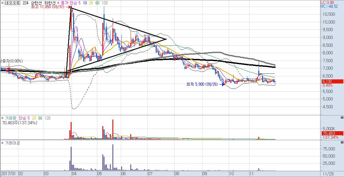 대칭삼각형 패턴은 개인적으로도 찾아보시면 정말 많은 종목들이 보이실겁니다.