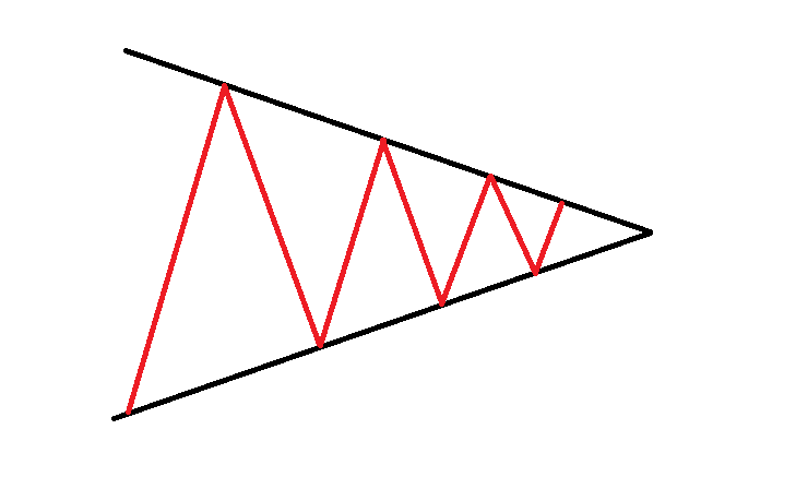해당 패턴은, 고점은 낮아지고, 저점은 높아지는 모양을 보여주며, 중립적인 패턴이라고 앞서 설명 드렸습니다.