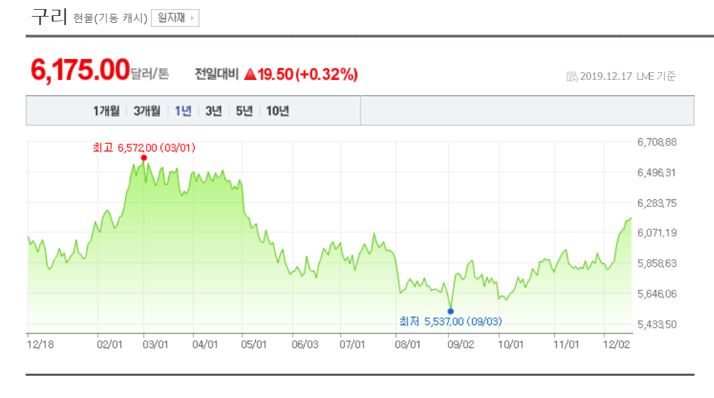 산업 전반에 사용되는 구리의 가격이 상승한다는 것은 경기가 확장 국면으로 들어가고 있다고 볼 수 있겠으며,
