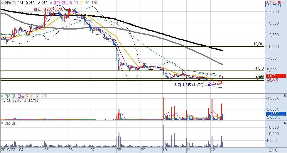 제낙스도 대표이사 구속 기사 이후에 바닥에서 횡보다가하 연일 상한가를 기록합니다.