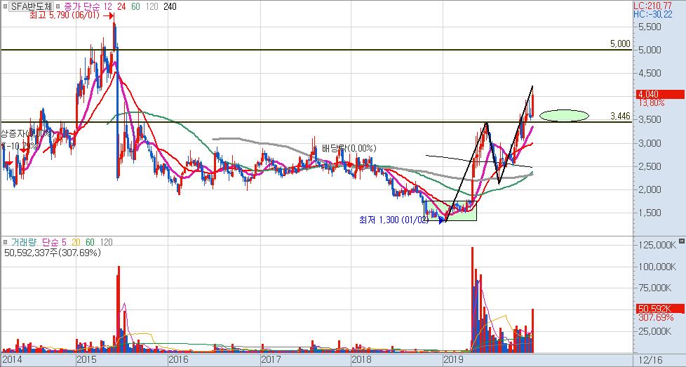 따라서 SFA반도체는 주봉상으로 접근을 하면 조금 심적으로 여유를 갖고서 매수 타점이나 목표치를 예상해볼 수 있겠네요.