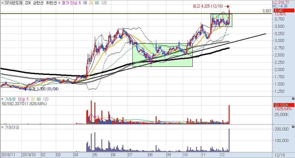 반도체 관련주 중에서 SFA 반도체가 전 고점 매물대를 돌파해주면서 굉장히 좋은 흐름을 보여주고 있습니다.