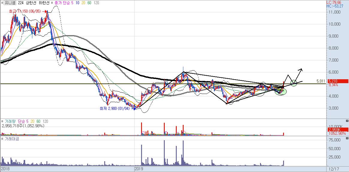 유니셈도 중단기 적으로 스윙을 해볼만한 매수 시점입니다.