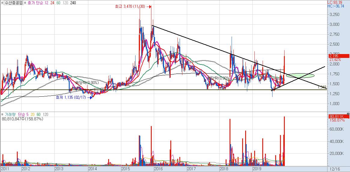 관련주로써 수산중공업이 오늘 큰 강세를 보였습니다.