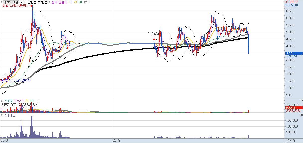 대호에이엘 유증 정정건으로 하한가에 가까운 폭락이 나옵니다.