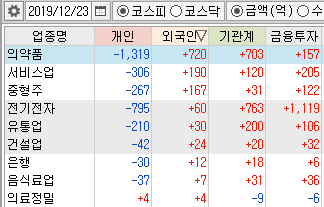 외국인, 기관의 수급을 보면 전기전자는 매수 포지션을 유지하였고, 대형 바이오 종목에 큰 매수세가 들어왔습니다.