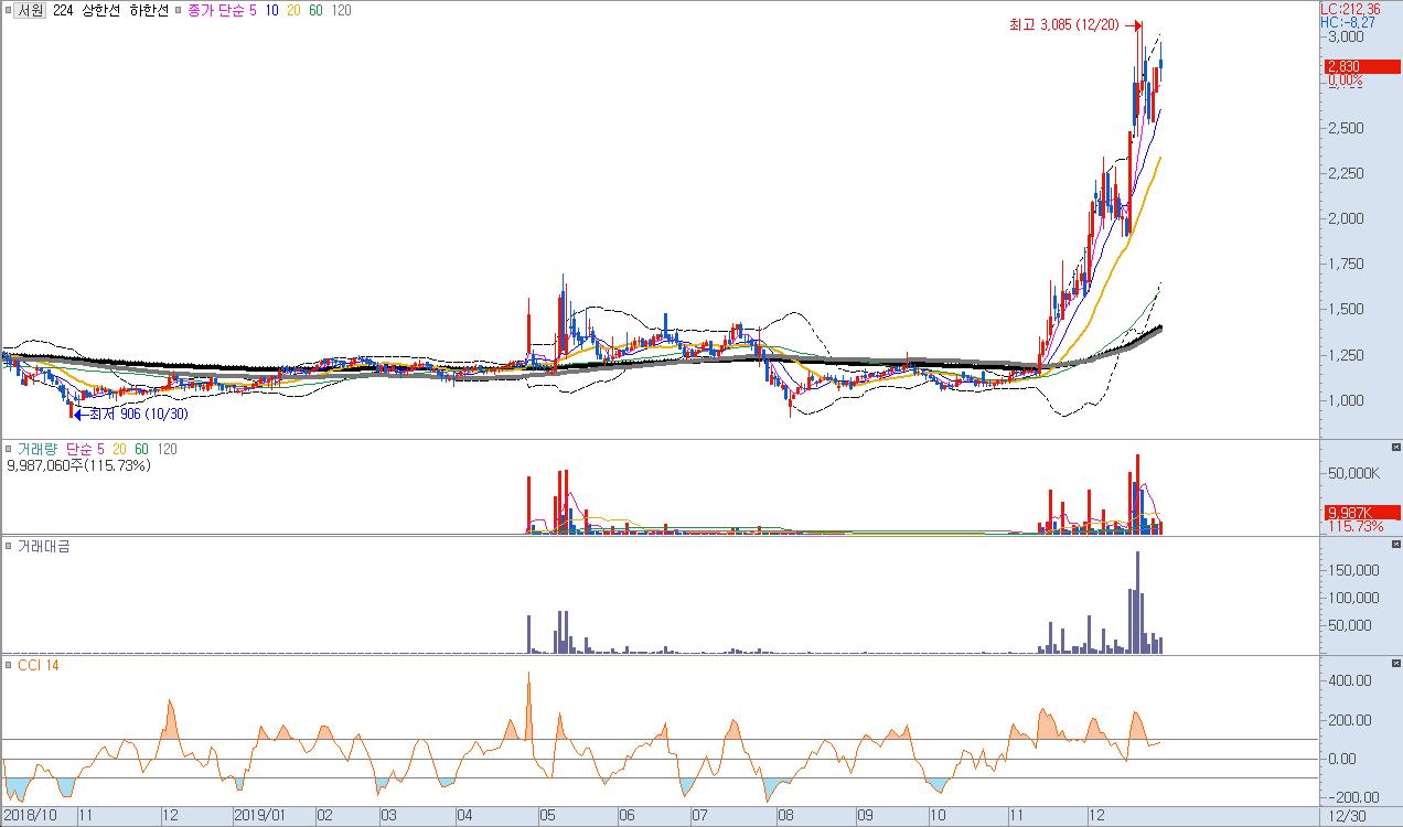 현재 서원은 저점대비 300% 정도 오른 대시세가 나오고 이격도 또한 굉장히 벌어져 있기 때문에 진입은 어렵습니다.