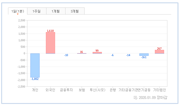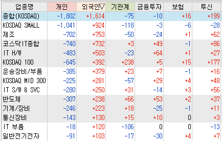 하지만 코스피와 마찬가지로 코스닥도 기관의 수급을 찾아볼 수가 없네요.