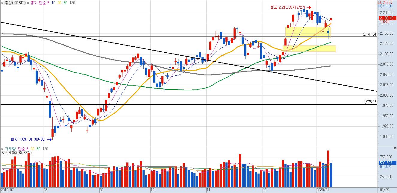 코스피는 1월 8일 음봉도지가 직전 상승 갭을 완전히 메꾸면서 좋은 모습을 보여주었습니다.