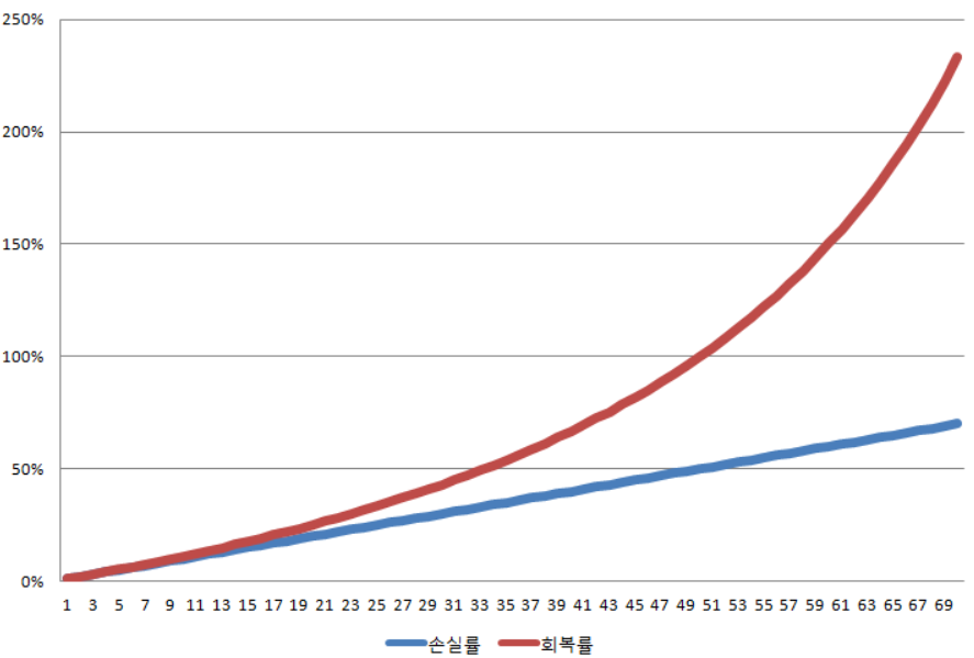 | 50% 손실 | 100/50 = 2 | 100% 수익 필요 |