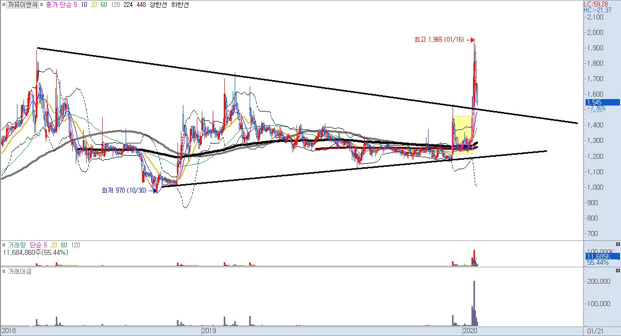 : 하지만 테마가 폐렴관련주이기 때문에, 추후 계속해서 폐렴 관련 이슈가 나와주어야.. 개인적으로 질병테마는 불씨가 사라지는 것도 확 사그라들기 때문.