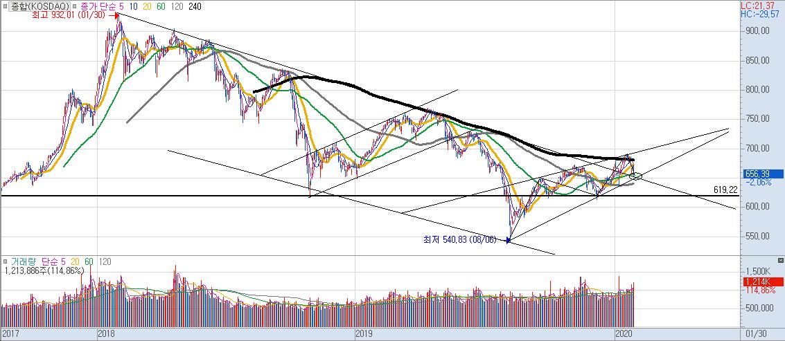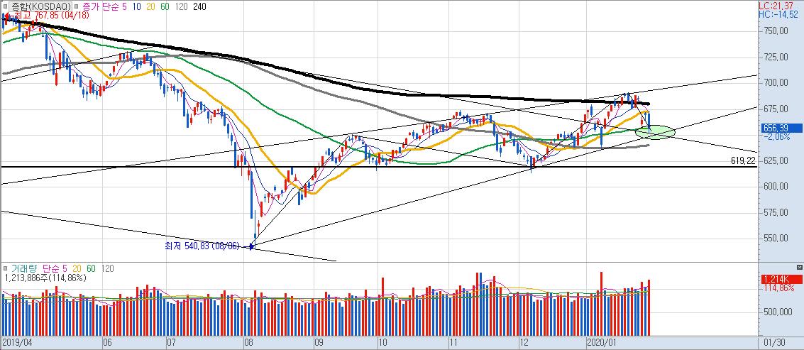 코스닥 일봉차트를 보게 되면 60일 선에서 반등이 나왔다고 볼수 있겠습니다만,