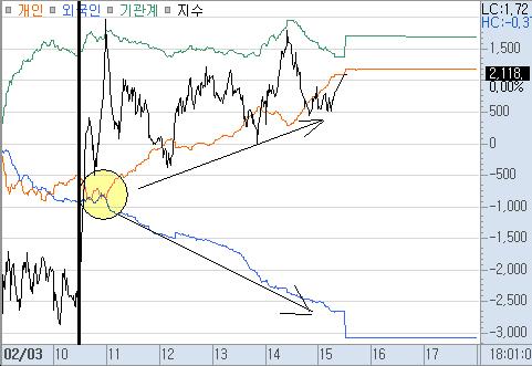 3. 코스피에서 기관의 수급은 주체가 되기 어렵고, 외국인이 주체이다. ( 대표적인 예가 삼성전자 )