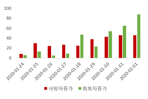 위 두개의 바이러스를 단순히 데이터로만 비교하기엔 어렵지만, 추이는 비슷하다고 생각을 하면 이번 증시 조정이 약간 우한폐렴을 빌미(?)로 한 조정이 아닌가 그런 생각이 들게 만드네요.