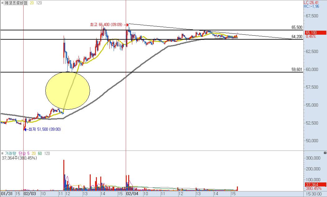 - 일봉 차트 상 양봉도지가 등장을 하였고, 분봉차트상 가격대 구간을 꾸준히 유지하며 시가선을 회복, 시간외에서는 상승마감