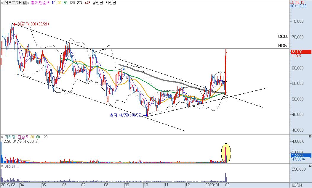 - 에코브로비엠은 SK이노베이션에 양극재 공급계약 관련하여 시가총액의 수배 되는 약 2조 7천억원 가량의 계약 공시가 뜨면서 장 중간에 거래정지를 당한 종목