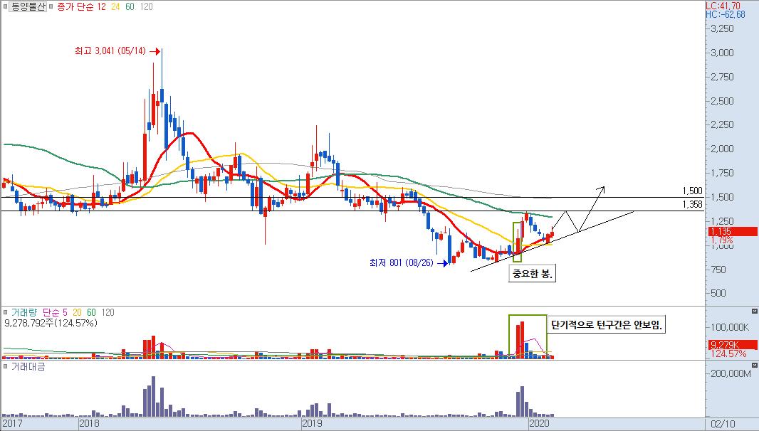 동양물산을 중단기적인 관점에서 접근하라고 말씀드렸던 이유가 주봉차트에 있습니다.
