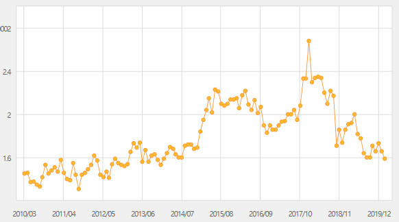 데이터를 살펴보아도, 2008년도 경제 위기 이후에 중간중간의 하락폭은 크게 있었으나, 신용잔고는 10년넘게 꾸준히 우상향 추세를 그리고 상승하고 있습니다.
