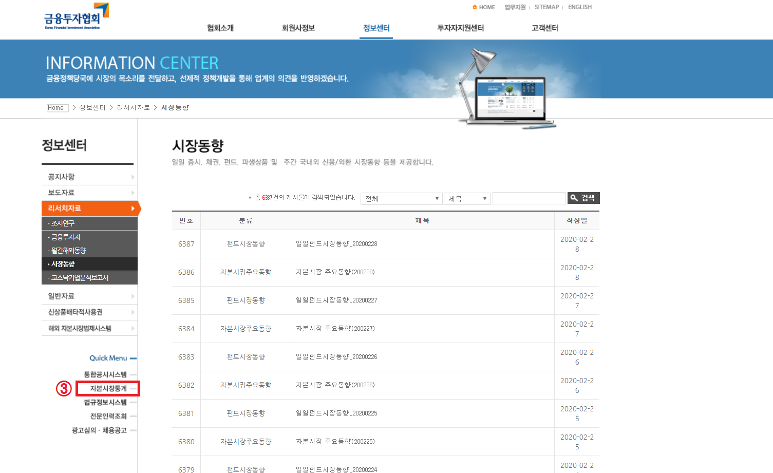3. 자본시장통계 클릭