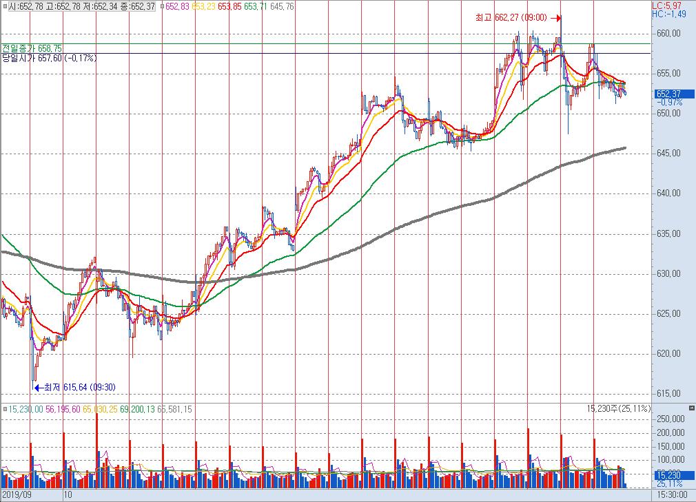 그래서 오늘 코스닥도 갭하락출발하여 음봉으로 마감했네요.