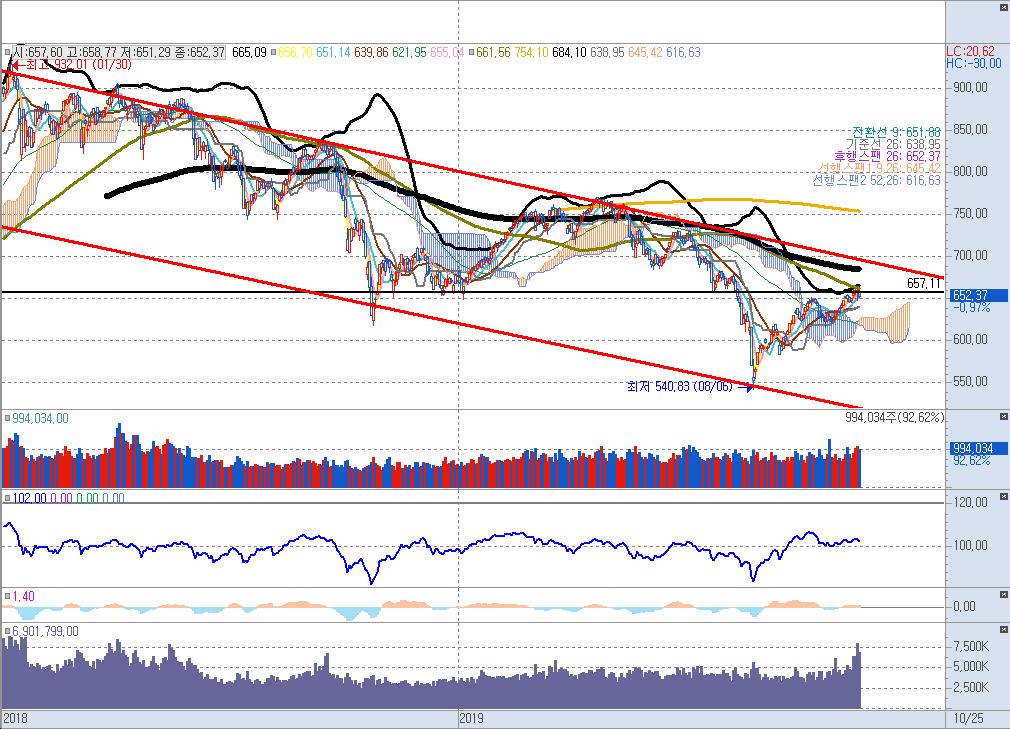 코스닥 지수만 보고 놓자면 기술적 분석으로 당분한 하방 조정이 나올가능성이 높은 자리 인듯합니다.
