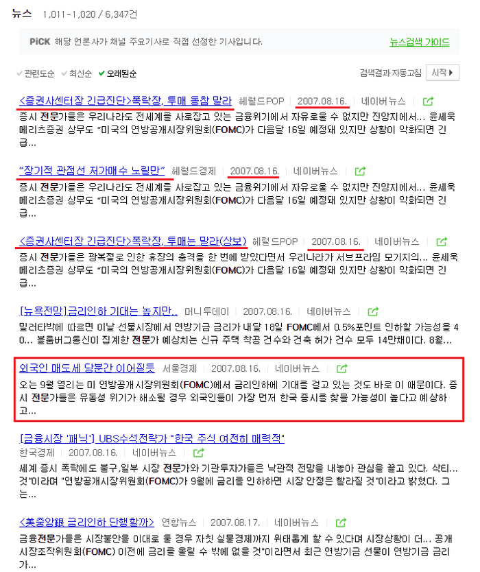 아직까지 표면적으로 드러나있는 미국의 경제적 펀더멘털적 요소들은 견고한편으로 보여지고있으나, 2008년도 경제 위기기 오기 전에도 이러한 패턴을 보였으며, 한국 애널리스트들도 증시는 저점이다 라고 주워담아라!! 외쳤던..