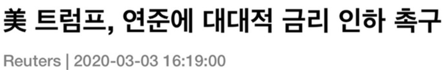 미 연준, 기준금리 0.5%p 긴급 인하…"코로나19, 경제에 리스크"(종합), 이준서기자, 국제뉴스 (송고시간 2020-03-04 00:49)