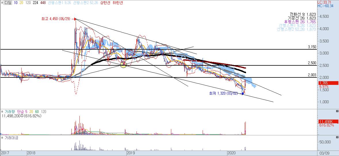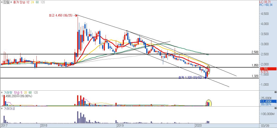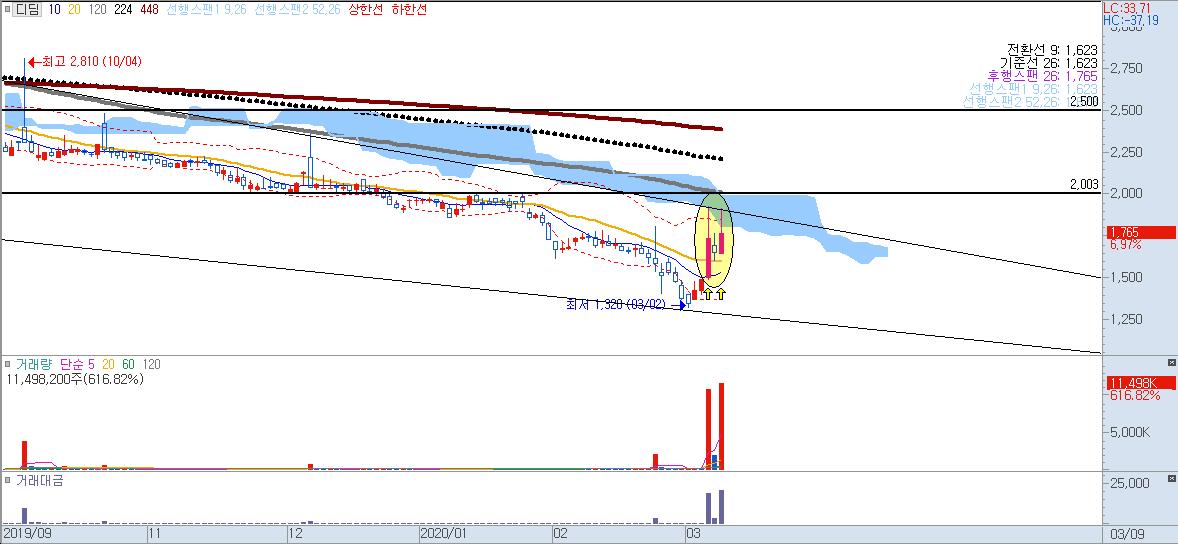 : 현 시황상으로는 디딤이라는 종목을 들어갈 이유는 없으나, 오늘 장에 검색기에 등장한 종목이 또이또이하여..