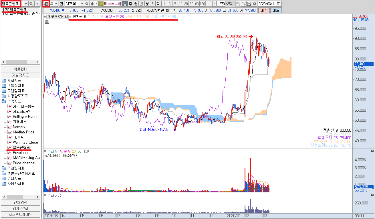 일단 일목균형표는 선행적 지표가 아닌 '후행성' 지표라고 알려져 있습니다.