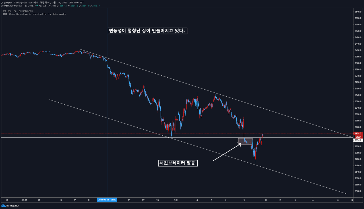 이는 코로나19에 대한 우려에 더해 국제유가폭락 사태까지 겹처 장중에 주가가 급락하면서 서킷브레이커가 발동 1997년 이후 처음으로 거래가 일시 중단되는 사태가 벌어졌네요.