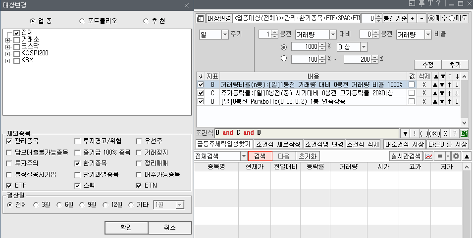 급등주 검색기 - "급등주 세력 입성 캔들 찾기"