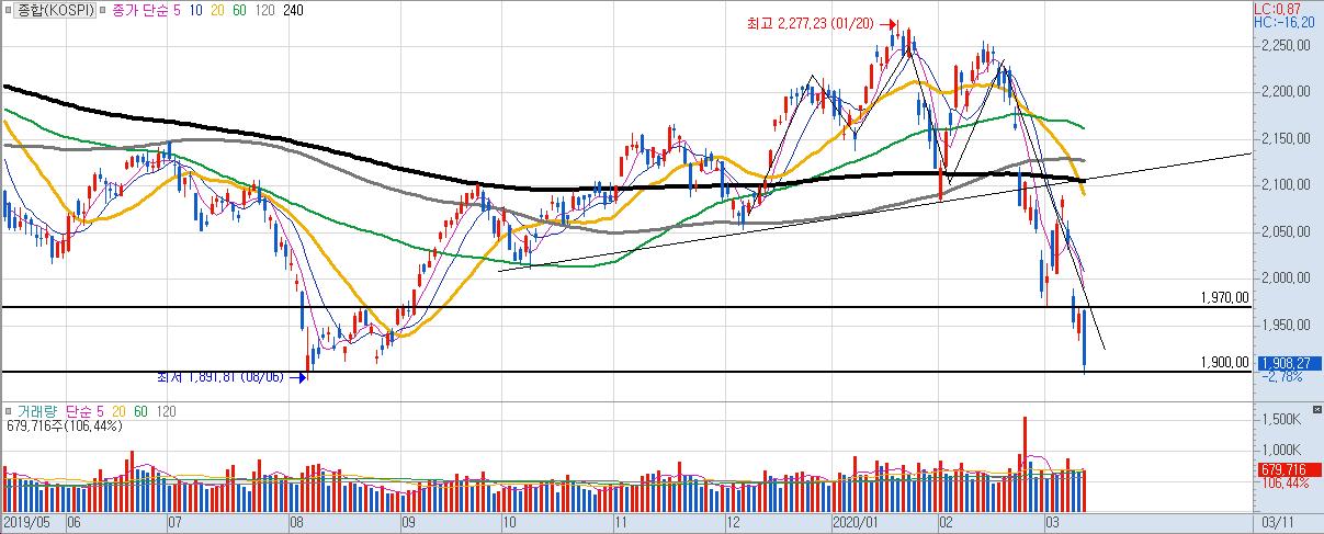 다만, 장중에 이미 급락을 통해 1,900 포인트가 무너진 상태였고,