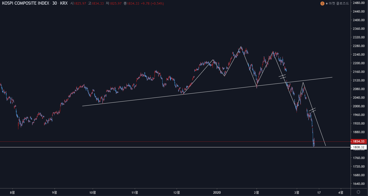 기술적으로 보았을 때, 1차 파동에 비해 더 긴 2차 파동이 30분봉상으로 보여주었기 때문에, 1,800구간에서 단기적인 상승 파동이 나올 확률이 높아보이네요.