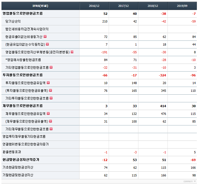 : 특히 2019년 말에는 영업이익 -82억으로 손실 최대치를 기록