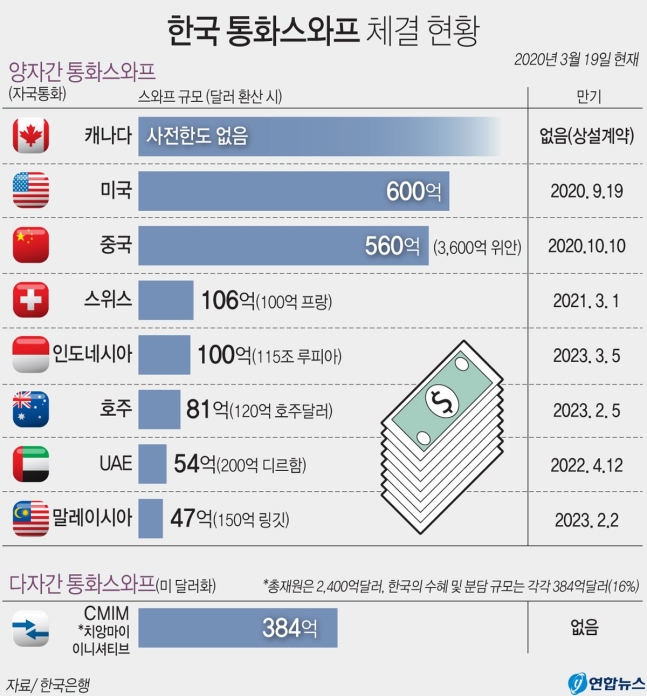 이번 스와프 체결로 인하여 외환보유고에 세계 기축통화인 달러를 어느정도 비축할 수 있게 된 것.