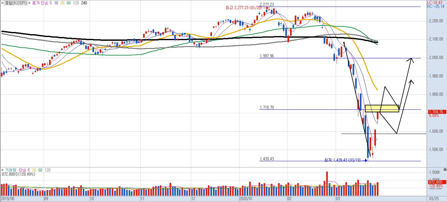 하지만 코로나19가 장기화 국면으로 가게 된다면, 지금까지 실시한 무제한 양적완화나 통화스와프체결등 경기부양책들이 의미가 없어지게 될 듯. 공든 탑이 무너지는 순간, 시장은 이전 보다 더욱 더 강한 패닉셀이 등장할 가능성도 배제 못할듯 하다.