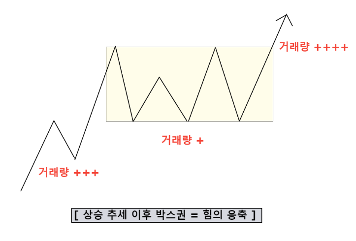 보통 거래량 밀집구간에서의 박스는 힘을 응축하는 자리라고 볼 수 있다.