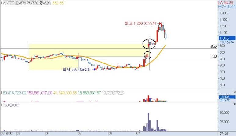 1. 박스권의 물린(?) 사람이 많은 상단선은 저항 매물대