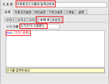 | 수식 내용 | ma(c,기간1,종류) | ma(c,기간2,종류) |