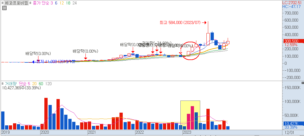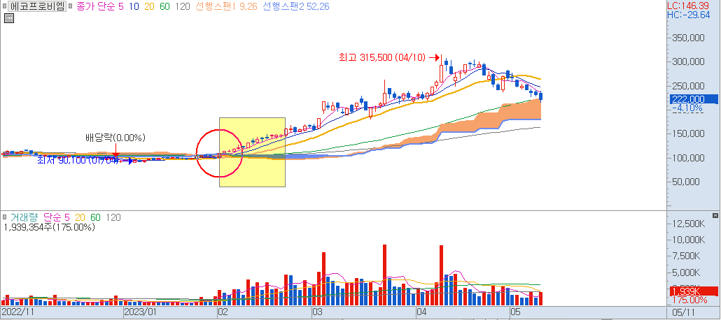 ▶ 에코프로비엠 월봉차트(2023년 2월)