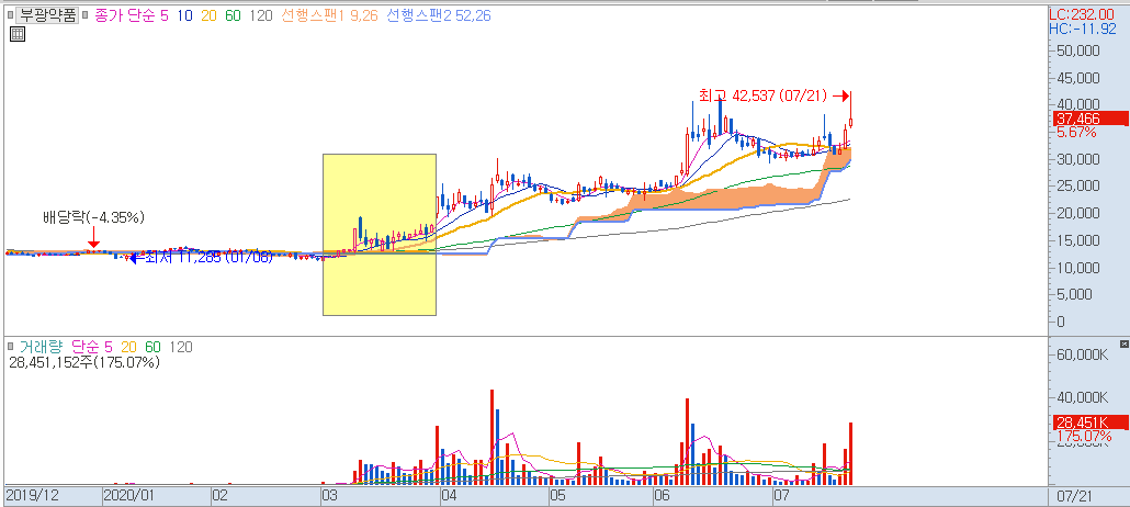 ▶ 부광약품 월봉차트(2020년 3월)
