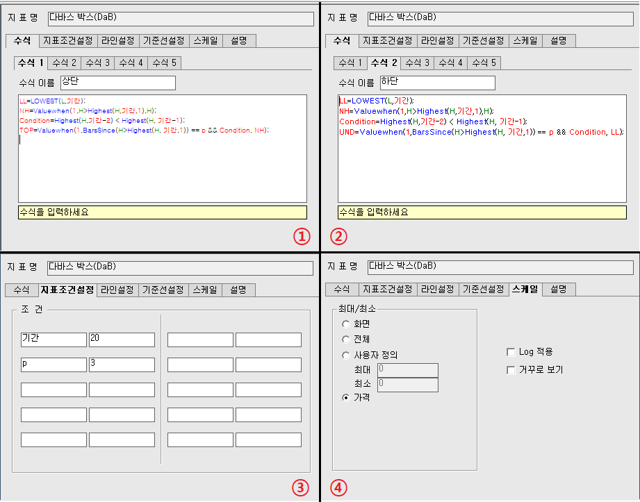 다바스 박스 지표를 차트에 표시하는 수식부터 알아보겠습니다.