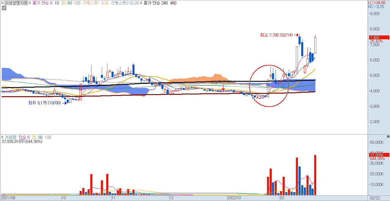 해당 매물대를 돌파하여 종가를 마감한 급등주 캔들의 특성상 장기 이동평균선을 포함하고 있는 장기형 급등주캔들은 거래량이 반드시 수반이될 필요성이 있습니다.