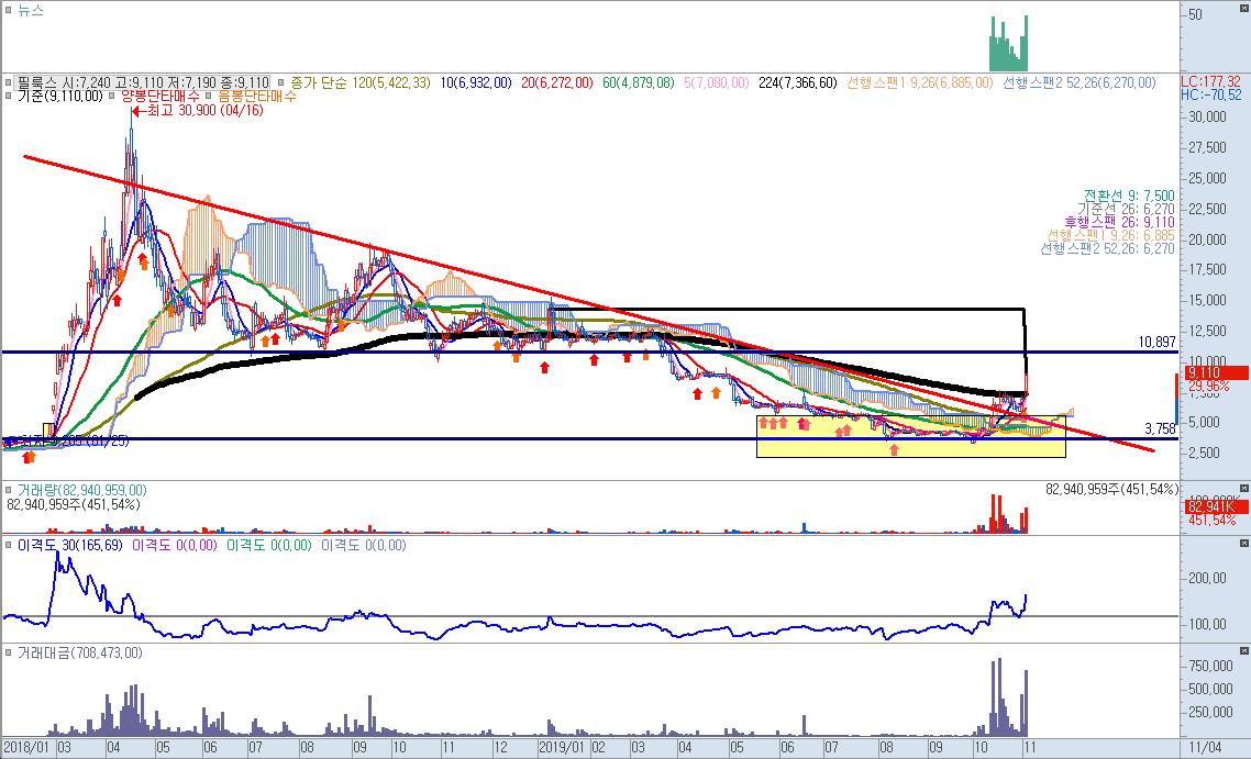 필룩스 종목에 대해서 자세한 공부를 하진 않았지만, 미국에서 임상 2상 신청 건으로 연일 급등세를 보이고 있으며,