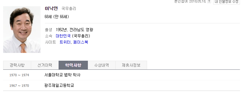 이낙연 총리는 광주제일고등학교 출신, 서울대학교 법학 박사 출신입니다.