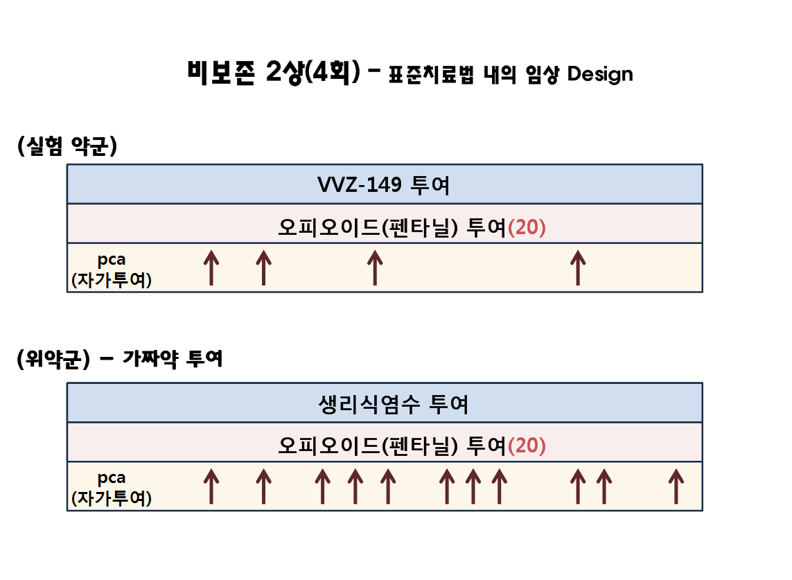 이에 비보존은 기존 마약성 진통제인 오피오이드를 사용하면서 비마약성 진통제인 오피란제린(VVZ-149) 임상을 어떠한 방식으로 효과적인 진행을 할지 전략적으로 구성하게됩니다.